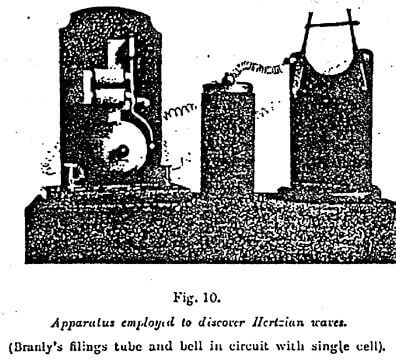确实我们经常有机会,在我们的实验过程中,观察到的设施及电波周游障碍。这显然是一个衍射现象的大小取决于波浪产生的散热器。是否在之前的实验中,散热器放置之前,在后面,或在盒子的侧脸的包含接收器,以一个完全拟合金属门铃声将同样行为。正是出于这个原因,仪器的敏感,这将是非常困难的,已经说过,对于赫兹效应研究折射,反射,极化波的他发现了存在。如果洛奇能够重复filings-tubes是因为,从建筑的本质,他们具有不敏感性大于赫兹的接收器。