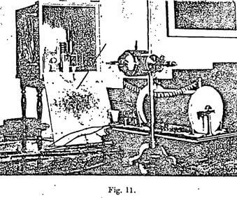 为了确定金属在薄或厚板允许电动波通过他们,m .膜和我有一些立方体盒约50平方厘米的构造不同的金属,和0.02毫米和2毫米厚,之间的接收装置。光阑的这些病例是被最地关闭门。散热器生产海浪被几英寸远离设备,和接受者当然是放在箱子里。它揭示了通过电波通过墙壁导致铃环(图11和12)