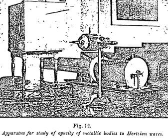 透明的身体上的想法目前赫兹波非常错误在1899年当我发表我的研究。实验似乎表明,所有金属的微小厚度和绝缘的厚度可以刺穿,,但这些观点都是不精确的。在他研究的开始,赫兹认为金属反射电波,因此提出了一定的透明度;但这是全部或部分不透明吗?这是点左未查明的。