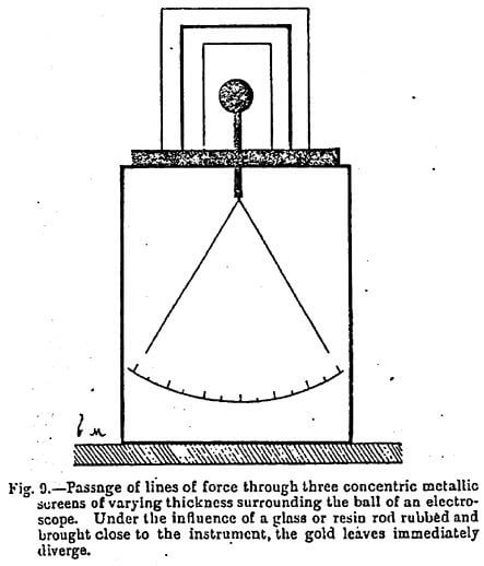 从之前,它的结果金属信封法关于电动波就像法拉第笼的关于静电感应。它会说。然而,在电动波的情况下,不产生缝运动的影响,对于静电。必须有同样观察到在电波的设施通过非常狭窄的缝隙而广场开口足够大的插入一个手指不会允许他们通过。电动波似乎表现得好像他们僵化,类似于一个金属盘传递毫不费力地通过一个足够大的缝隙,但停止由孔小于其直径。
